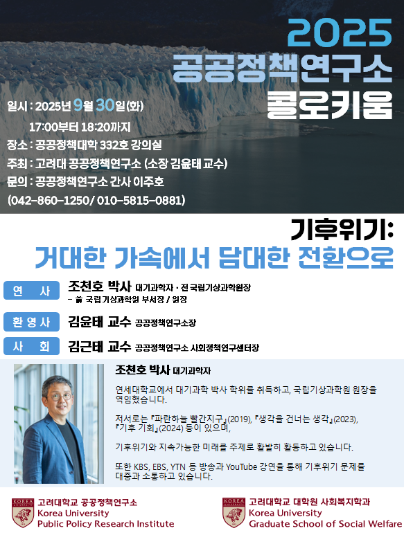 <2025학년도 2학기 1차 콜로키움> 조천호, 기후위기 : 담대한 전환으로