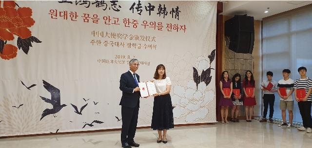 주한 중국대사 장학금 수여식(18학번 윤소연)- 등록일2019.09.26